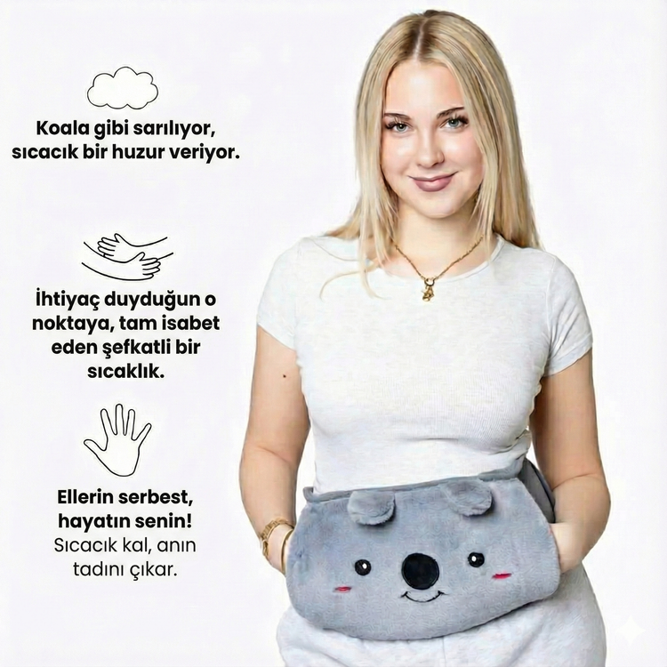 Sıcak Koala ile tanışın: Size sarılmayı bilen 3'ü 1 arada mucize. Eller serbest tasarımı sayesinde hareket özgürlüğünü keşfedin, inatçı ağrılara ve kramplara konforla veda edin.